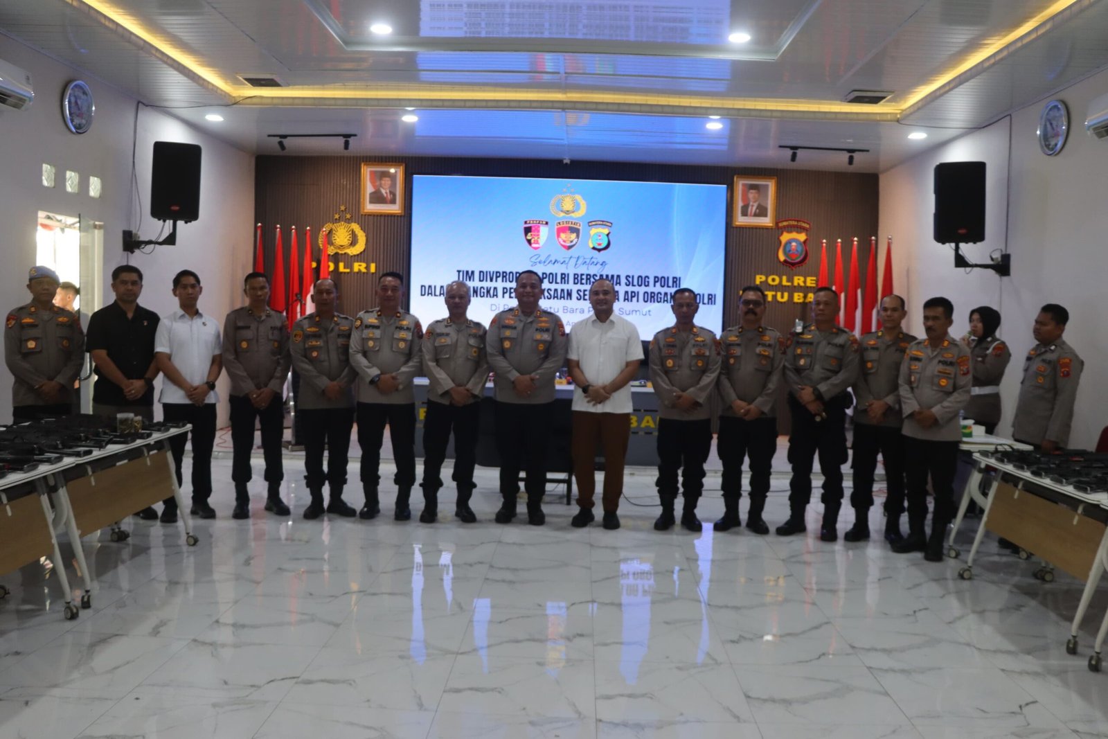 Tim Divisi Profesi dan Pengamanan (Divpropam) Polri bersama Staf Logistik (Slog) Mabes Polri melaksanakan pengecekan senjata api (senpi) di jajaran Polres Batu Bara. Sabtu (18/4/2026) pukul 11.00 Wib.