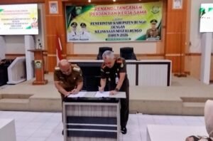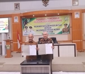 Penandatanganan perjanjian kerja sama ini juga menjadi momentum penting dalam upaya pencegahan potensi permasalahan hukum di lingkungan pemerintah daerah, sekaligus meningkatkan kepercayaan masyarakat terhadap kinerja pemerintah.Kami berharap kerja sama ini dapat memberikan pendampingan hukum bagi pemerintah daerah sehingga pelaksanaan program pembangunan dapat berjalan dengan baik, efektif, serta memberikan manfaat yang sebesar-besarnya bagi masyarakat Kabupaten Bungo,” ujar Bupati Dedy Putra.Sementara itu, pihak Kejaksaan Negeri Bungo Bapak Fik fik zulrofik.S.H. M.H