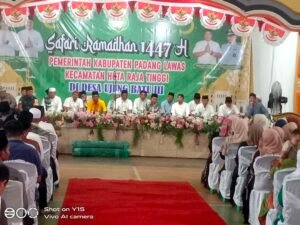 Hutaraja Tinggi, 23 Februari 2026 – Bupati Padang Lawas, PMA (Putera Mahkota Alam Hasibuan SE), melaksanakan Safari Ramadhan 1447 H/2026 di Desa Ujung Batu 3, Kecamatan Hutaraja Tinggi, Kabupaten Padang Lawas, Sumatera Utara. Acara ini dihadiri oleh rombongan pejabat Pemerintah Kabupaten Padang Lawas dan warga masyarakat setempat.