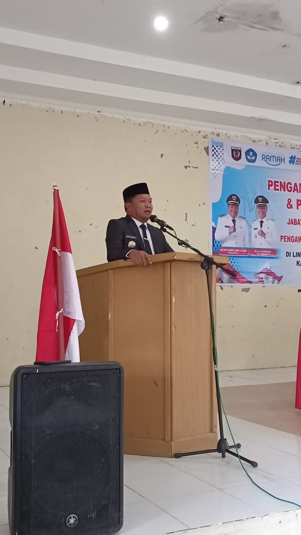 Bupati Mamasa Welem Sambolangi hadir pada pelantikan Kepala Sekolah dan Pengawas Satuan Pendidikan Lingkup Pemerintah Kabupaten Mamasa di Aula Dinas Pendidikan, Senin 12/1/2026.