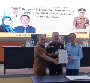 Burusergapinfo.com Muara Bungo – Kejaksaan Negeri (Kejari) Bungo resmi menjalin kerja sama dengan PT. Bungo Dani Mandiri Utama (BDMU) dan PDAM Pancuran Telago Kabupaten Bungo melalui penandatanganan perjanjian kerja sama (PKS) yang dilaksanakan Senin 13 April 2026 di Ruang Aula Kejaksaan Negeri Bungo