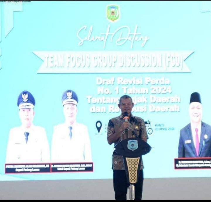 Pemerintah Kabupaten Padang Lawas resmi menggelar Focus Group Discussion (FGD) membahas Draf Revisi Peraturan Daerah No 1 Tahun 2024 tentang Pajak Daerah dan Retribusi Daerah. Kegiatan berlangsung di Aula Kantor Bupati Padang Lawas, Kamis (23/04/26).