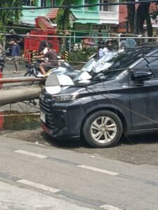 Tiang Listrik Roboh Timpa Mobil di Depan Bank BCA Dekat Semagor, Diduga Akibat Kelalaian Penebangan Pohon